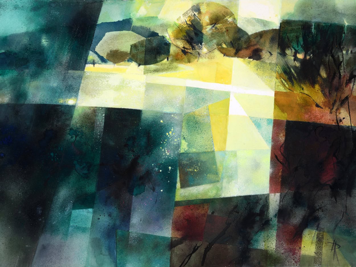 Although my recent work is becoming more abstract, I am told it still retains a suggestion of reality. Water and light are key inspirational elements, so water appears quite often in the composition. Combining imagination, colour and mark making, I am striving to develop a language; one that I hope will convey my emotional response and excitement. I hope to share this journey with you, walking this fine line between abstraction and reality, as my pleasure is twofold if I am able to convey the excitement I experience.